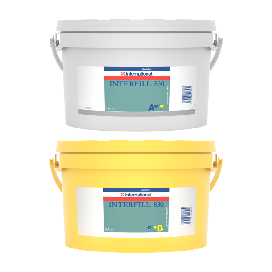 Interfill 830 è la scelta migliore per profilare sopra e sotto la linea di galleggiamento su scafi in acciaio, alluminio e compositi. La speciale formulazione bicomponente epossidica di colore grigio chiaro riempie fino a 25 mm con una mano senza rischio di colature. Composizione a bassa densità. Ad alta forza e resistente agli urti. Facile da carteggiare. Impermeabile. Una volta carteggiata la superficie di Interfill 830 è sufficientemente liscia per poter essere ricoperta direttamente con il primer epossidico ad alto spessore Interprime 820. Possono essere impiegati anche Interprotect e Interprime 880. Interfill 830 è particolarmente adatto per applicazione su grandi aree.