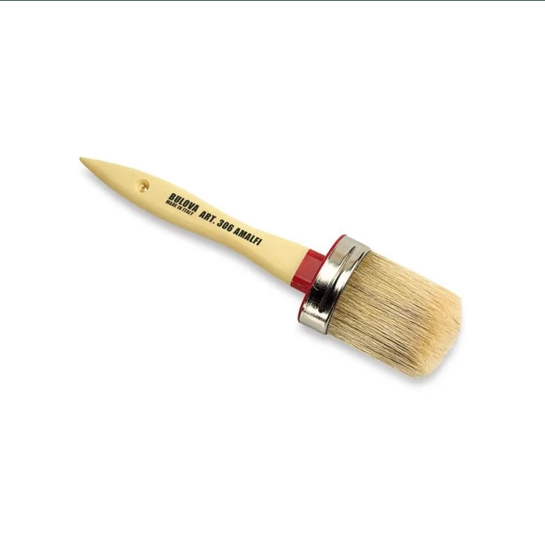 Pennello ovalino per smalti e vernici a solvente, manico in plastica, ghiera in nichel