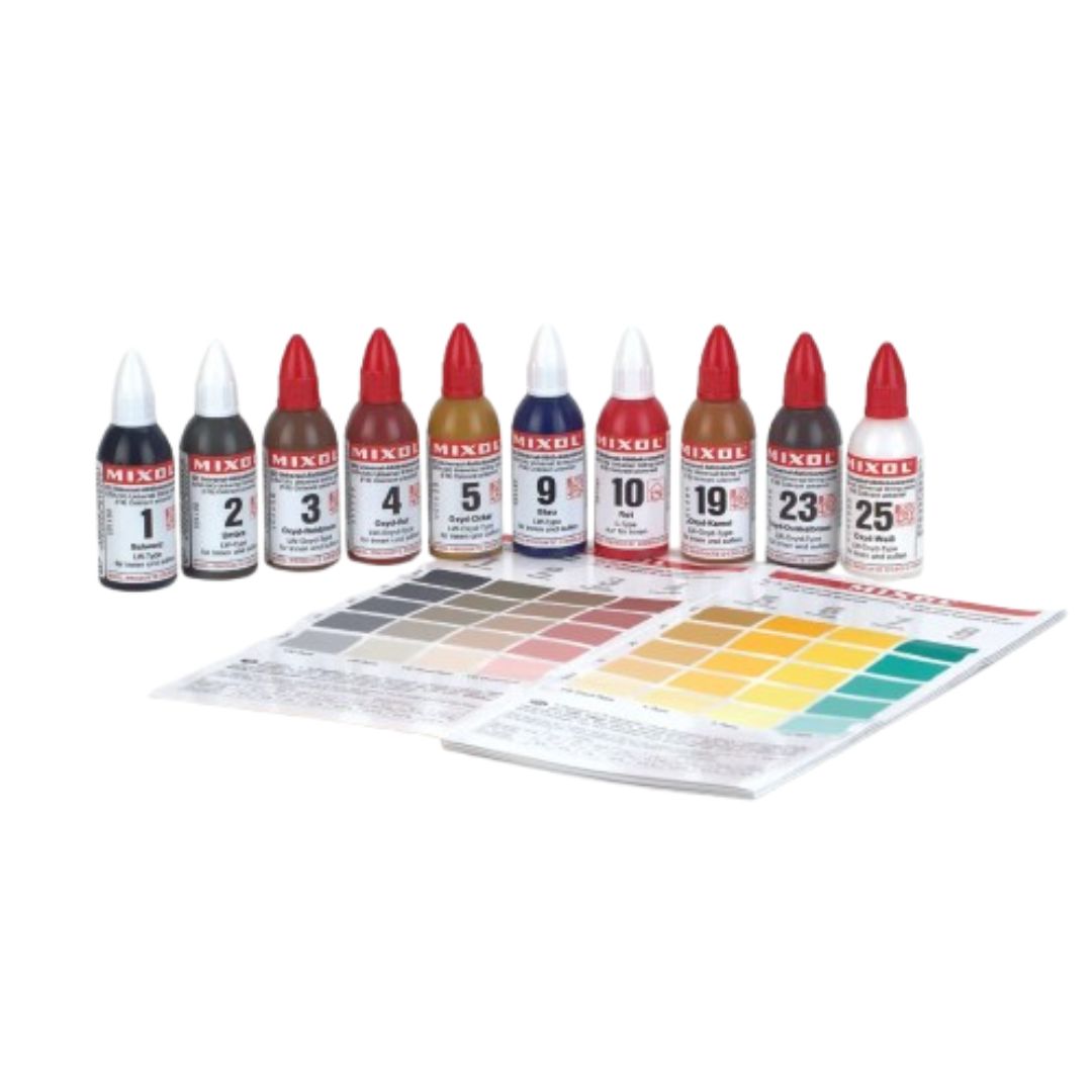 I coloranti concentrati universali Mixol sono paste coloranti tedesche di alta qualità, note per l'elevato potere colorante, la resistenza alla luce e la compatibilità con quasi tutte le pitture, vernici e stucchi. Non formano pelle, non seccano nel flacone e sono resistenti al gelo e al calore, ideali per uso interno ed esterno